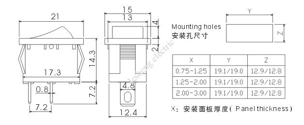 型 號(hào) Model No. | 端 子數(shù) Terminal Quanlity | 通斷狀態(tài) Circuitry Trait |