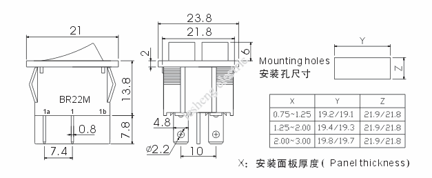 工作參數(shù) Contact Rating: 250VAC,6A,5A;125VAC,10A;12VDC;24VDC 接觸電阻 Contact Resistance: 35mΩ MAX 絕緣電阻 Insulation Resistance: 500VDC,50MΩ 耐壓強(qiáng)度 Dielectric Strength: 1250VAC,1MIN 工作溫度 Operating Temperature: T100 電器壽命 Electrical Life: 10000 Cycles |