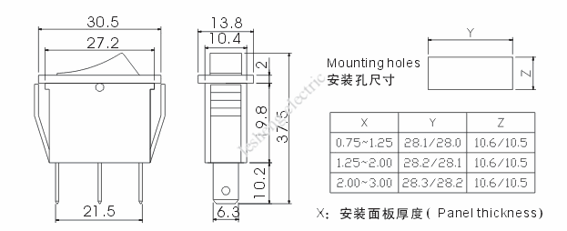型 號 Model No. | 端子數(shù) Terminal Quanlity | 通斷狀態(tài) Circuitry Trait |