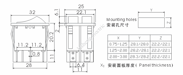 型 號 Model No. | 端子數(shù)Terminal Quanlity | 通斷狀態(tài) Circuitry Trait |