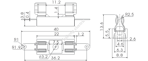 保險絲規(guī)格 | 額定電流 | 額定電壓 | 額定功率 | 接觸電阻 | 絕緣電阻 | 耐壓 |
