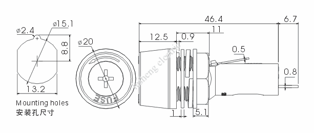 保險絲規(guī)格 | 額定電流 | 額定電壓 | 額定功率 | 接觸電阻 | 絕緣電阻 | 耐壓 |