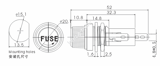 保險絲規(guī)格 | 額定電流 | 額定電壓 | 額定功率 | 接觸電阻 | 絕緣電阻 | 耐壓 |
