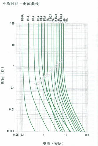 目錄號 | 額定電流(安培) | 額定電壓(伏特) | 最高電阻值(歐) | 熔化熱能值I2t(A2Sec) |