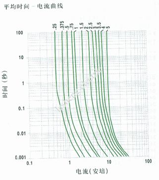 電流額定值百分比 | 在25℃時(shí)的斷路時(shí)間 |