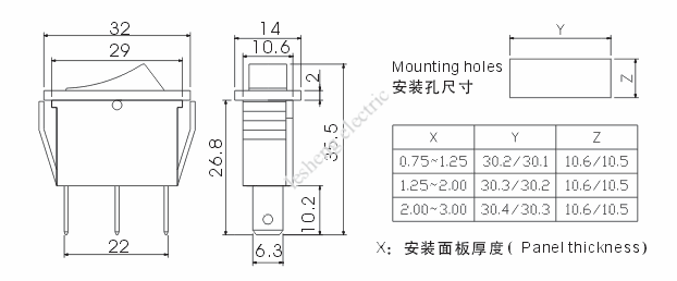 型 號(hào) Model No. | 端子數(shù)Terminal Quanlity | 通斷狀態(tài) Circuitry Trait |