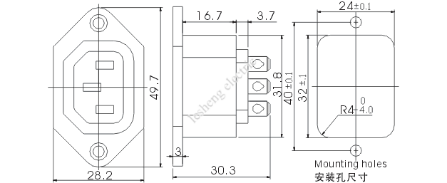 1. 主體材料Body Material: Black Glass-Fiber P.B.T.94V0